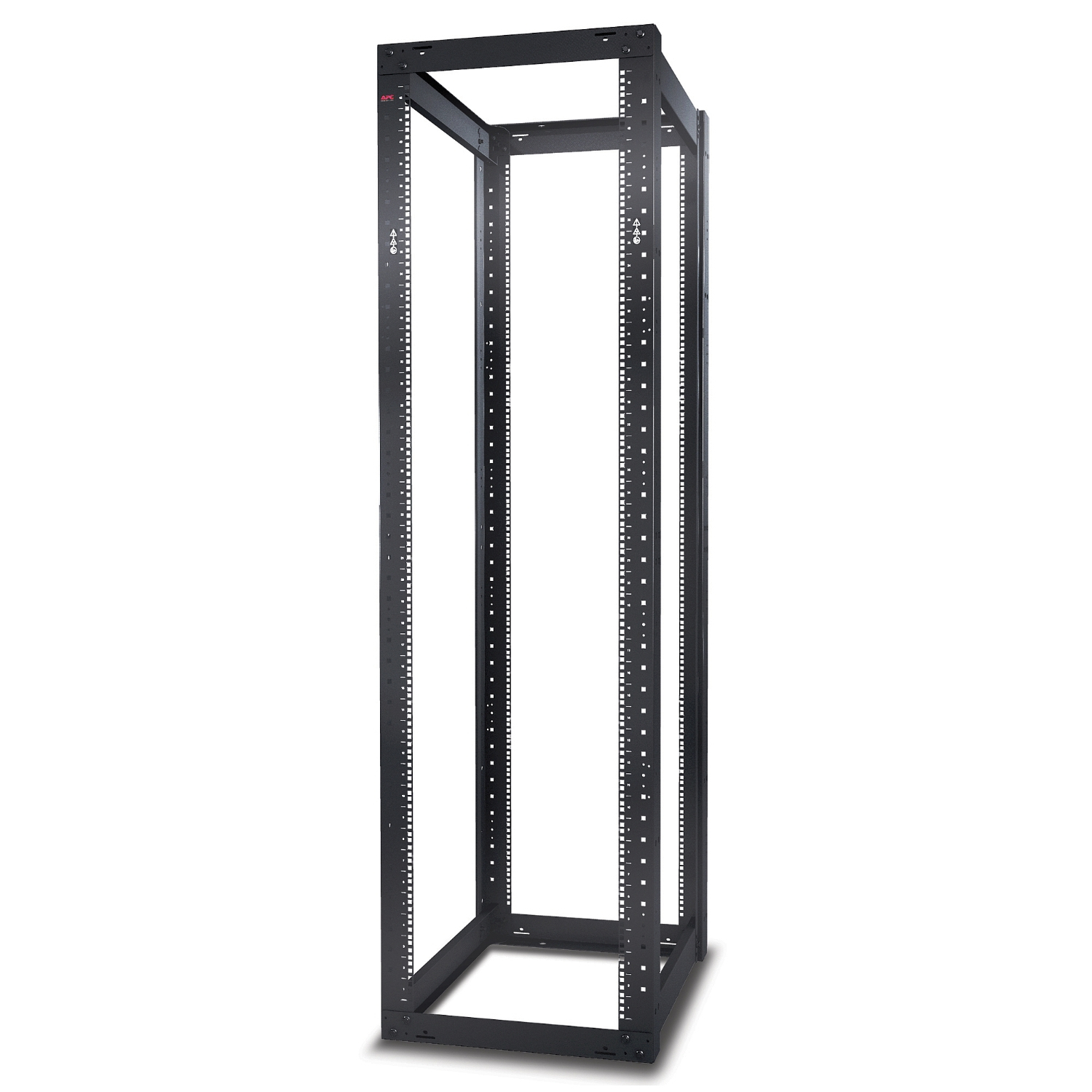 APC NetShelter Open Frame offers a high-quality four-post rack for storage of industry-standard (EIA-310). Mount 19-in rack-mount hardware, which includes servers and voice, data, networking, internetworking, and APC power-protection equipment. Rack has a static load of 907 kb (2000lb) and a max equipment depth of 747 mm. The 4 post design includes square 9.5 mm holes.
