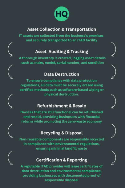 With technology continuously evolving, businesses frequently need to upgrade their IT infrastructure, which leads to the issue of disposing redundant IT assets. IT Asset Disposition (ITAD) is the process of securely and responsibly disposing of unwanted IT equipment whilst ensuring data protection, regulatory compliance, and environmental sustainability.